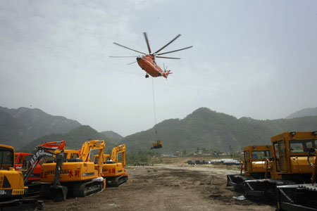 Tangjiashan lake, formed by landslides that blocked a river known as the Jianjiang after the May 12 quake, is at risk of breaching its bank. Every resident from the targeted areas in Mianyang, a hard-hit city in the May 12 quake, has been kept well-informed of the emergency evacuation plans through repeated drills and public announcements, including routes for evacuation, directions to safe areas and locations of temporary shelters, said Tan Li, Party Secretary of Mianyang. "The efforts are aimed at getting all the 1.3 million residents on the move within four hours in case the quake lake bank fully opens, and zero deaths in the process of evacuation. Otherwise, it will mean a breach of duty on our part as government employees," said Tan, who is also chief of Mianyang City Quake Control and Relief Headquarters. To this end, many soldiers, armed police and security officers are on standby and will go door-to-door to look for laggards in case of emergency, according to Tan. Meanwhile, hundreds of workers, using 40 large pieces of earth-moving equipment including bulldozers, have been working non-stop on top of the Tangjiashan barrier, constructing a diversion channel. Yang Hailiang, a leading on-site rescue operation officer, told Xinhua that one third of the sluice was finished thanks to factors including fine weather on Wednesday and airlifts of machinery and other supplies. Water resources workers have been closely monitoring hydrological data concerning Tangjiashan, one of 35 such lakes, around the clock. The lake is some 3.2 kilometers away from the seat of Beichuan County, the area worst hit in the devastating quake on May 12. It is inaccessible by road and can only be reached by foot or air. The lake holds about 130 million cubic meters of water, said Liu Ning, the Ministry of Water Resources chief engineer, who is at Tangjiashan to oversee the diversion work. Its water level was 727.02 meters on Tuesday, up 1.82 meters from Monday and only about 25 meters below the lowest part of the barrier. |