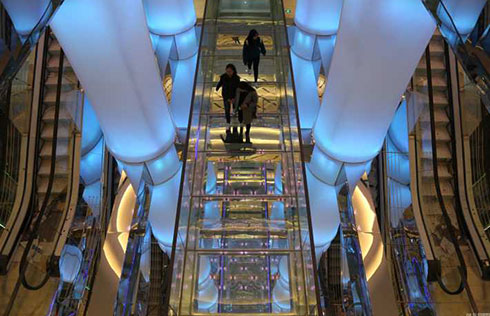 A visitor at CHTF is trying on the head-worn theatre, a latest product developed by Royole, a Shenzhen innovation company, which can facilitate the near-sighted with myopia degrees of 200 to 700.