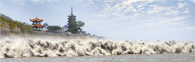 Qiantang River tide: The waters engulf the sun and skyThe world-renowned Qiantang River tide is a peculiar attraction, detracting in a way from the image of Hangzhou as tranquil and gentle city. |