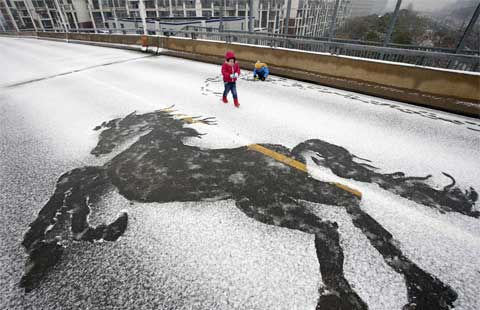 Photo taken on Feb 9, 2014 shows the sea ice on the beach of Beidaihe in Qinhuangdao city, North China's Hebei province. Temperature of this area dropped to minus 14 degree Celsius on Sunday. [Photo/Xinhua]