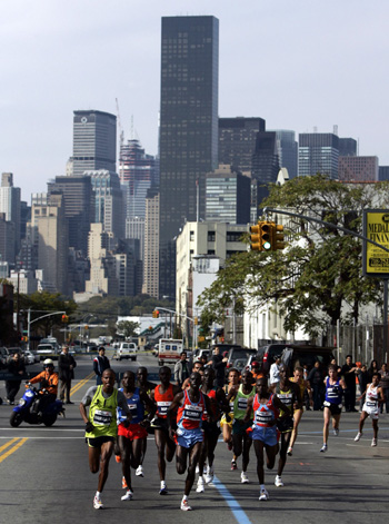 Updated: 2007-11-05 11:02 ![]() Runners from the men's elite division race make their way through the Borough of Queens during the New York City Marathon in New York November 4, 2007. [Agencies]