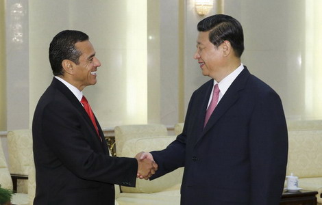 Maria Sharapova of Russia hits a return to Hsieh Su-Wei of Taiwan during their women's singles match at the French Open tennis tournament at the Roland Garros stadium in Paris, May 27, 2013. Sharapova defeated Hsieh 6-2 6-1. [Photo/Agencies]