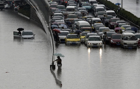 Agnieszka Radwanska of Poland runs to hit a return to Sabine Lisicki of Germany during their women's semifinal tennis match at the Wimbledon Tennis Championships, in London, July 4, 2013. [Photo/Agencies]
