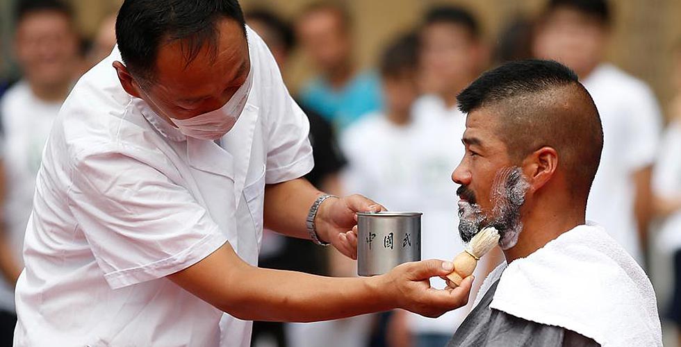 Jake Gibb, left, and Casey Patterson of the United States win their first gold at the FIVB Beach Volleyball World Tour in Shanghai, May 4, 2013. [Photo/icpress.cn] |