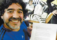 阿根廷“球王”馬拉多納5月31日簽署聲明并委托新華社獨家發布,拒絕接受中國第九城市計算機技術咨詢公司關于擅自使用馬拉多納肖像一事進行的道歉。馬拉多納同時表示,他根本沒有與第九城市公司董事長、上海申花俱樂部投資人朱駿進行過任何接觸,也不會和這樣“根本不敢面對馬拉多納的人”合作。
