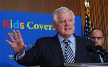 Sen. Bob Casey, D-Pa., right, looks on as Sen. Edward Kennedy, D-Mass., discusses children's health insurance legislation during a news conference on Capitol Hill in Washington Thursday, Nov. 1, 2007. [Agencies]