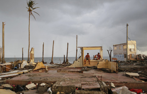 A damaged statue of Jesus Christ that was recovered from rubbles is placed in a church in an area wrecked by Typhoon Haiyan in Tacloban November 21, 2013. [Photo/Agencies]