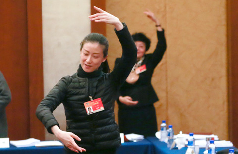 A model presents a creation by French designer Barbara Bui as part of her Autumn/Winter 2015/2016 women's ready-to-wear collection during Paris Fashion Week March 5, 2015. [Photo/Agencies]