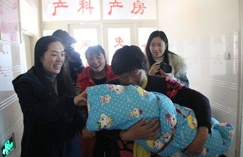 The Duchess of Cambridge with her newborn daughter at the Lindo Wing, St Mary's Hospital, London, May 2, 2015. The baby girl made her first appearance to the public. [Photo/IC]
