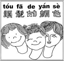 The posting showed five characters (written in the archaic style no longer used on the Chinese mainland except by calligraphers) marked by stand-alone pinyin phonetics without identifying the characters' relations to words. The five characters mean "hair colors". In pinyin, they should be written as toufa de yanse rather than tou fa de yan se as written by the teacher.